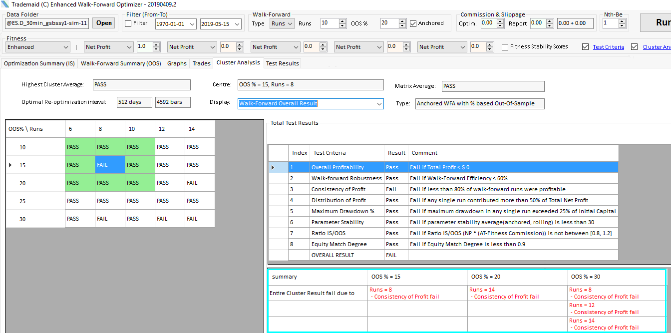 image depicting an example of Walk Forward Optimizer cluster analysis