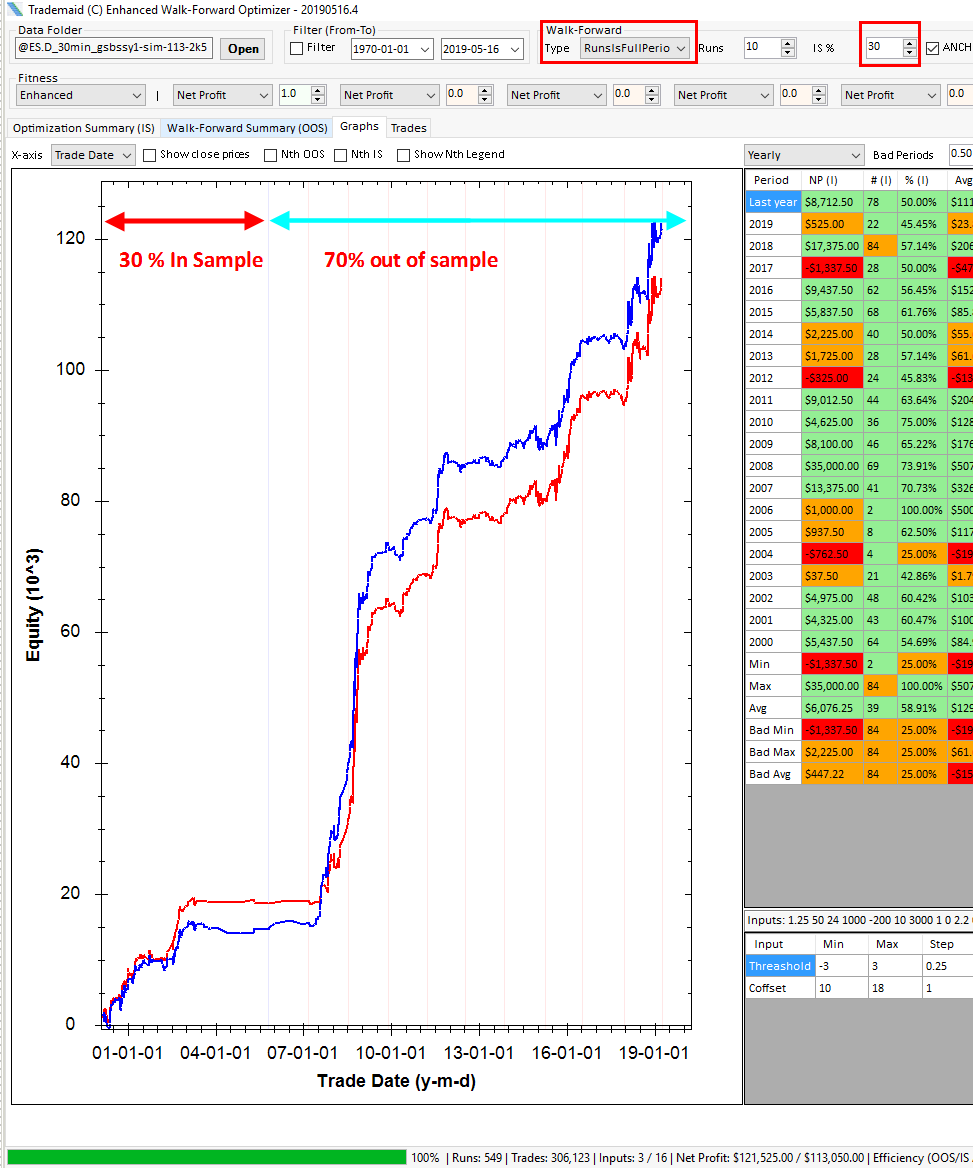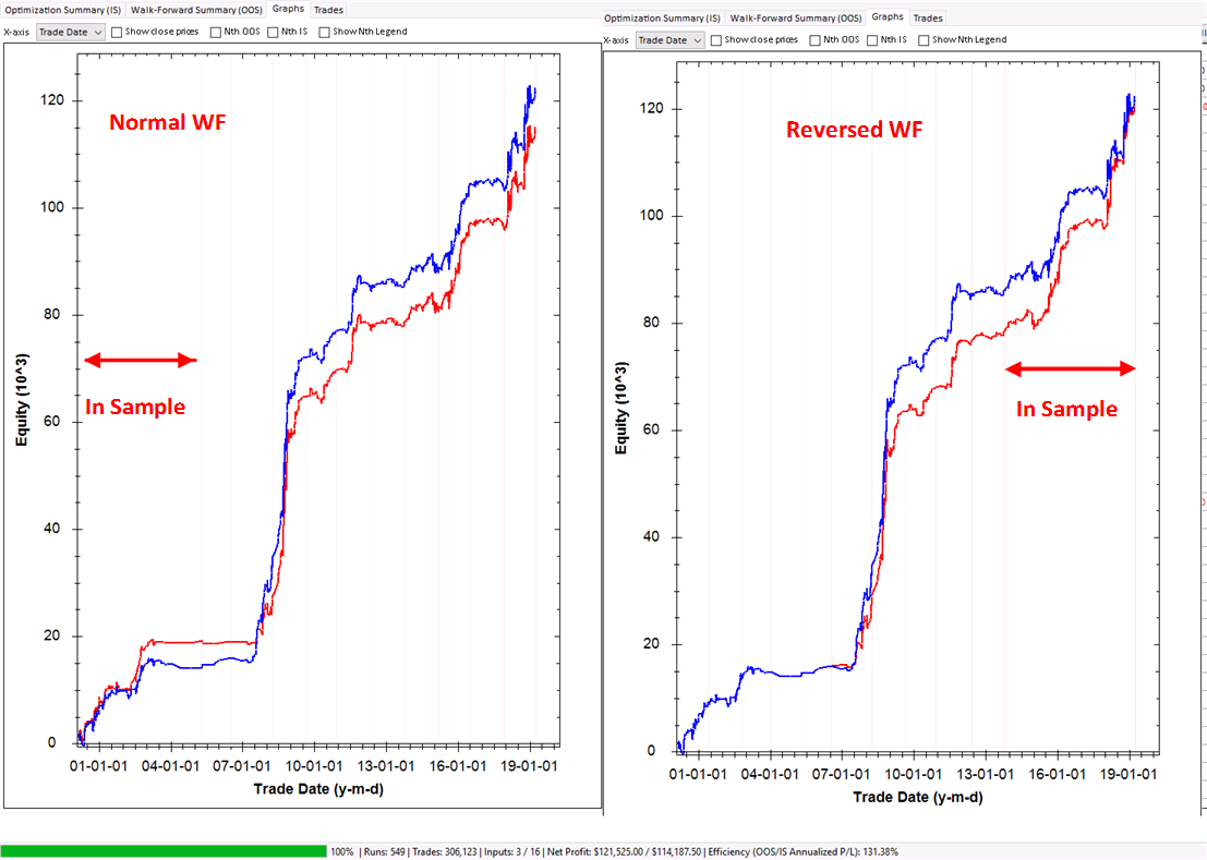 The left graph is a normal WF. The right one the In Sample period has been reversed.