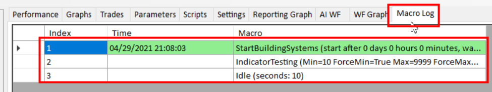 The macro completes by choosing the top 10 indicators. Every time this test is run, results will vary significantly. This is a good thing as it gives more diverse output and also means GSB users will not all be building the same systems.