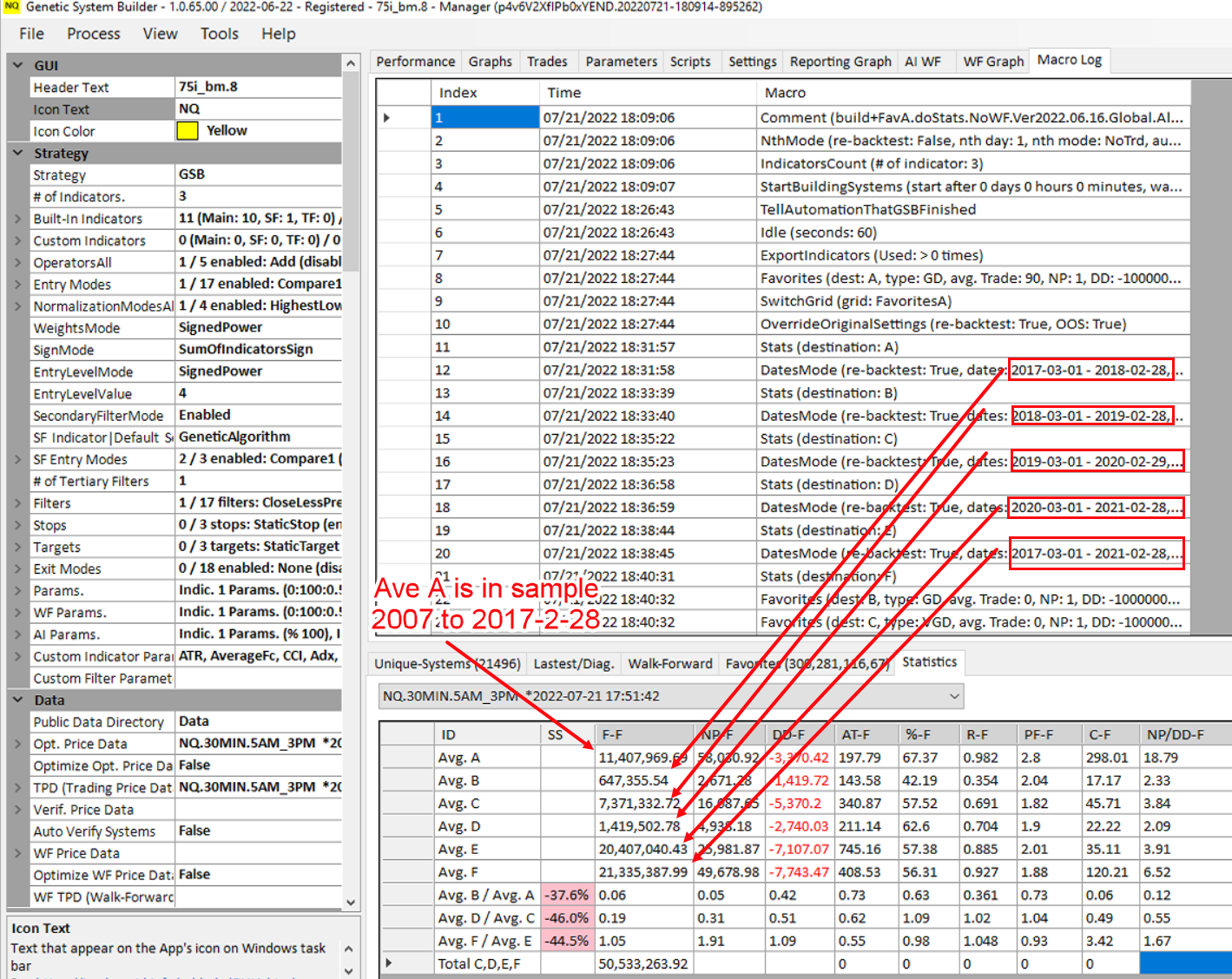 2) Build 20,000 systems, and allow GSB to choose the top 300, and the best of these 300 systems into Favorites B,C,D