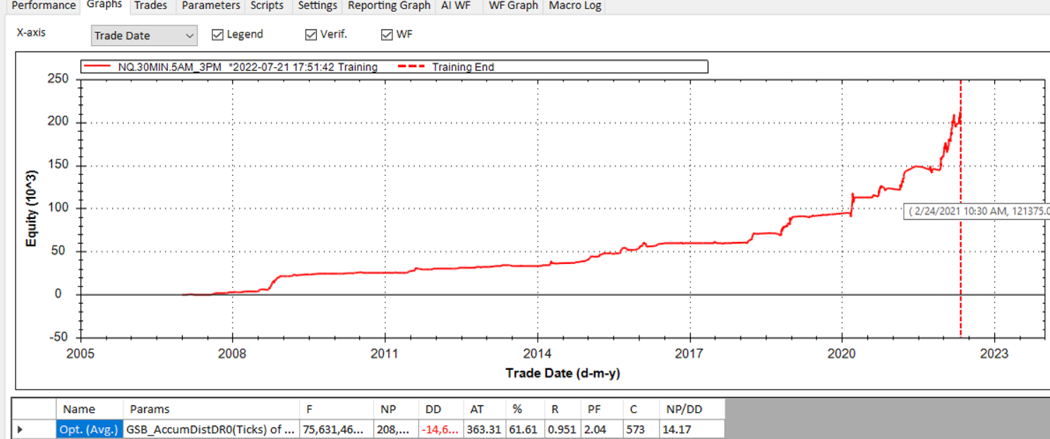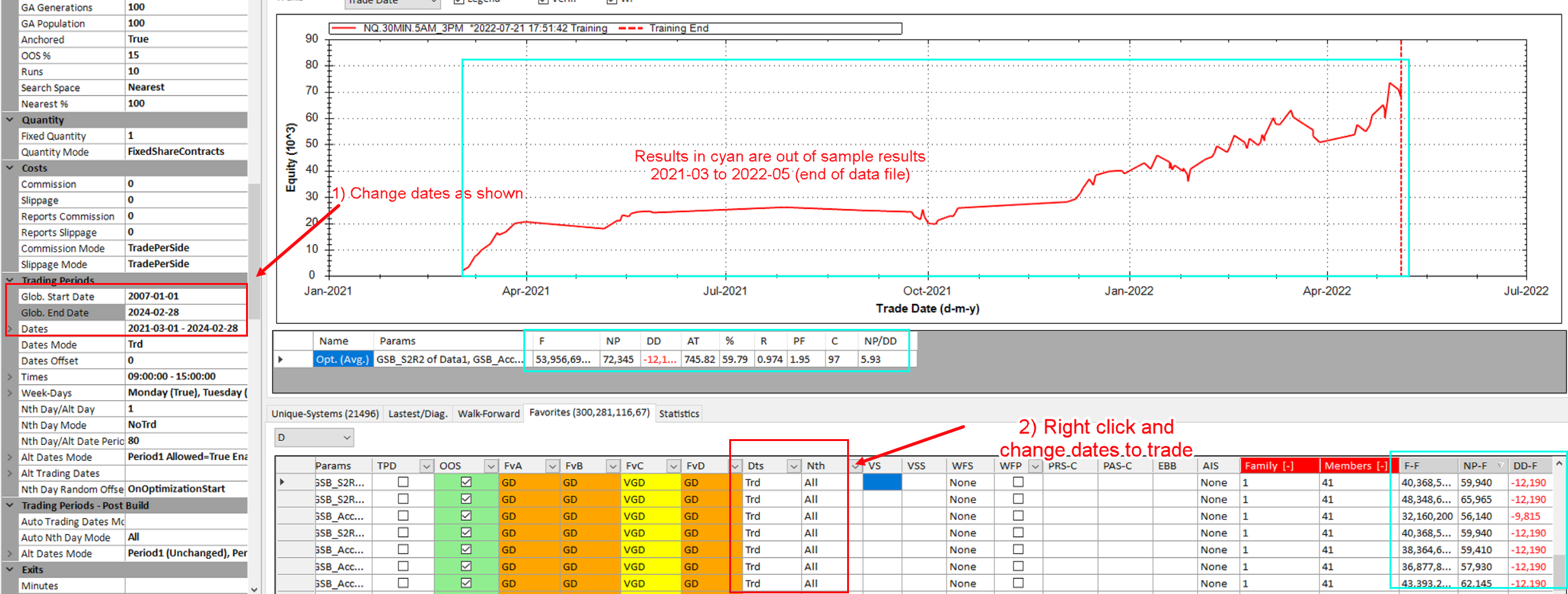 5) Walk forward a few members in this group. Choose systems that have got good walk forward results for live trading.