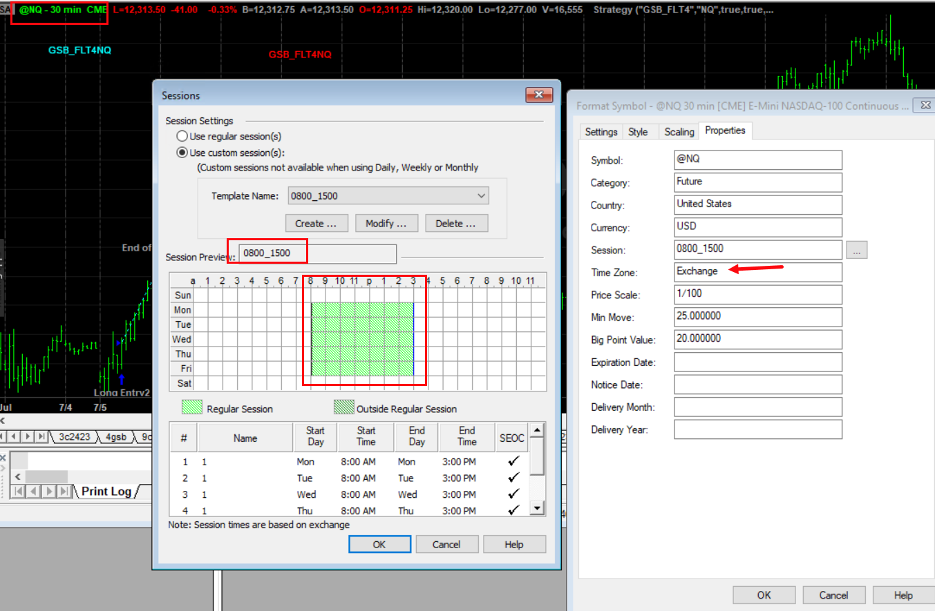 iii. Change of session times. Our data now starts at 8.00 am instead of 8:30 am. This now means we use symbol @ES NOT @ES.D