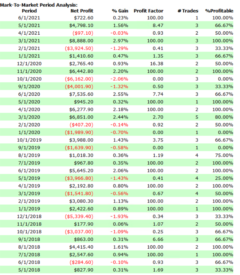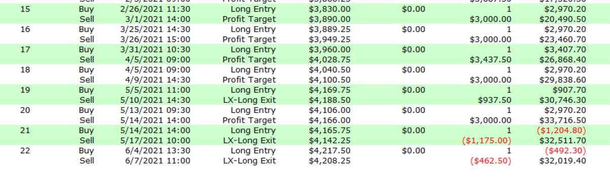 Results includes $4.80 brokerage and 2 ticks slippage round turn.