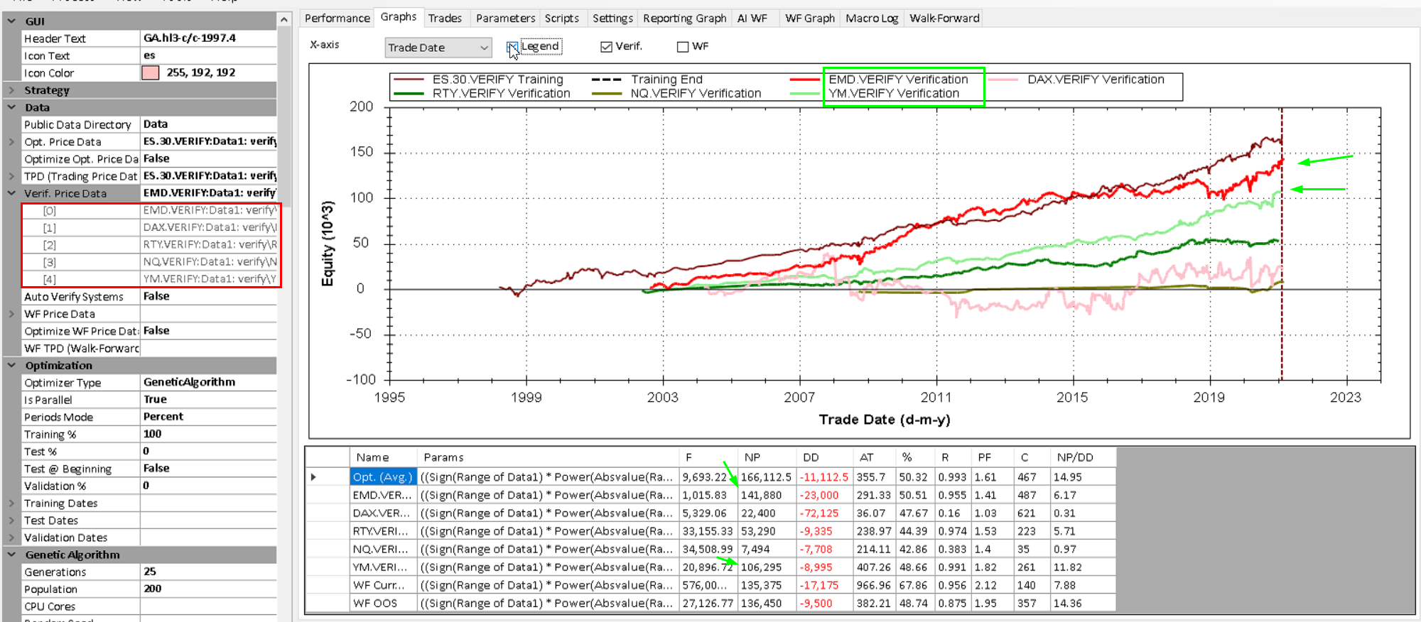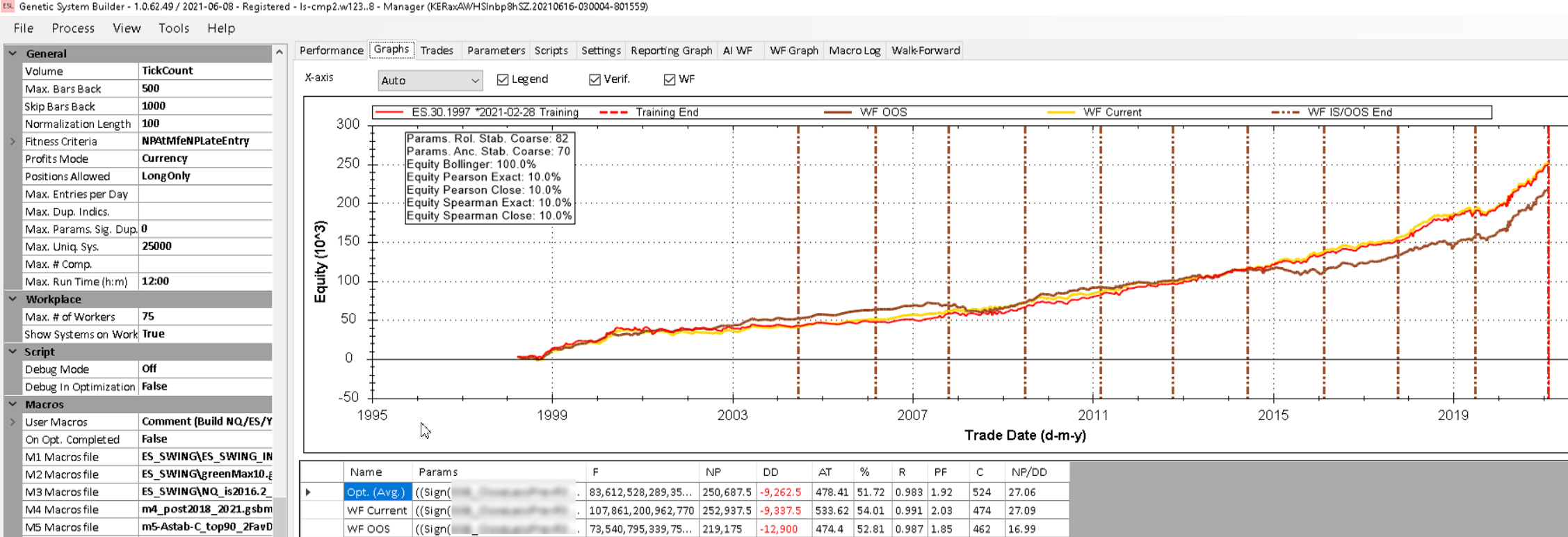 I chose this system below as all members in the family had nice Walk-forward curves there were parallel, and they all had good results on EMD and YM (emini dow)