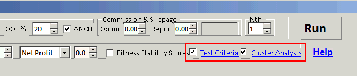 To adjust the Test Criteria / Cluster Analysis, tick the box and click on the appropriate word.