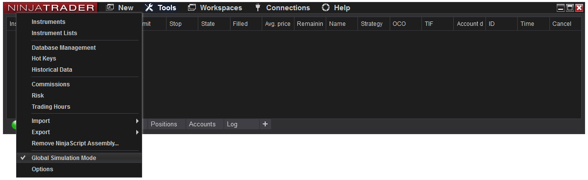 It is good practice to develop a habit of checking the state of the Global Simulation Mode before enabling strategies.