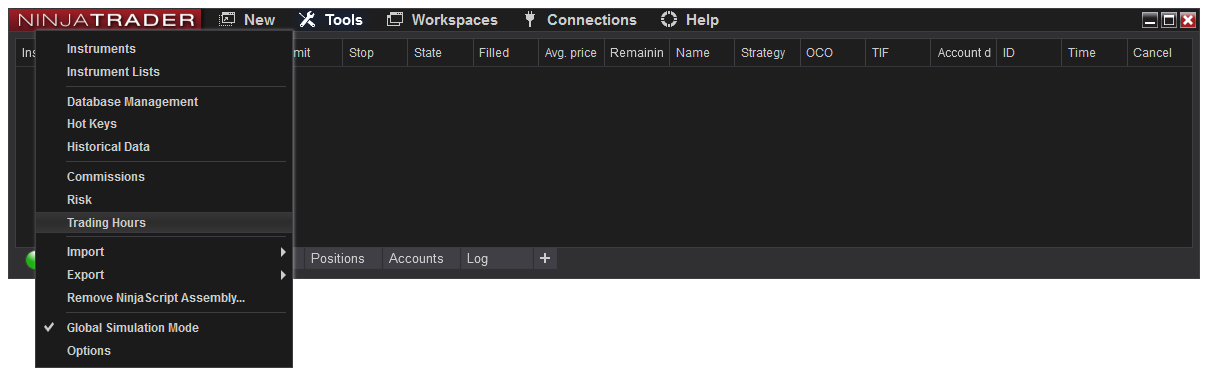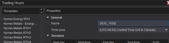 Trading Hours are the NinjaTrader equivalent of Tradestation session templates.