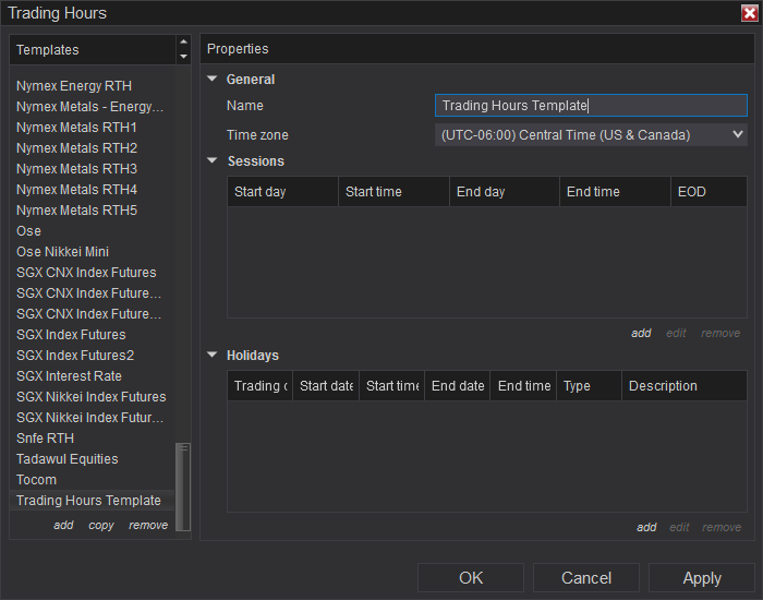 Left click Apply and the Trading Hours template will be added to the list on the left.