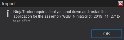 If you are asked to shut down and restart NinjaTrader, left click OK.