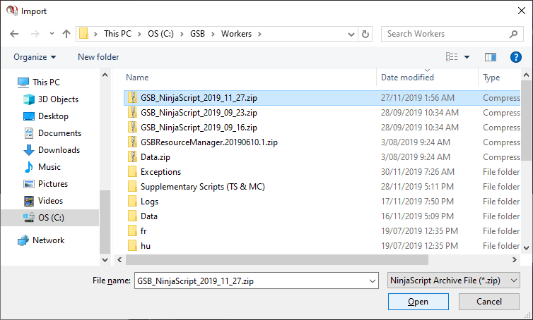 Navigate through your directory structure to the GSB folders and select the most recent file. Sorting by Date modified may assist.