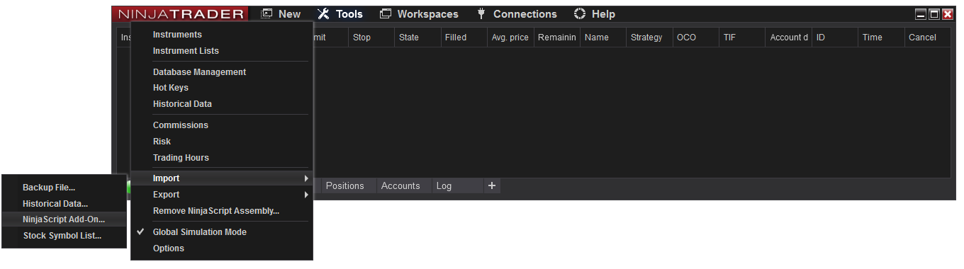 First ensure the you have downloaded the most current version of GSB and the NinjaScript AddOn from the Resource Manager.
