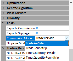 TradePerSide: If Trade Per Side (More common for Future) selected, then trade commission = 2 x Commission.