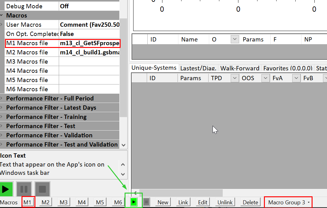 One you have built 50,000 systems, run macro1 to select the top 250, and to walk forward them.