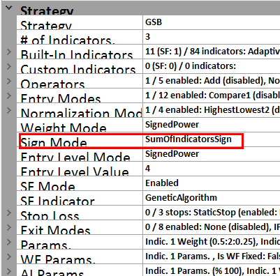 If you see sign mode, it must be on SumOfIndicatorsSign. (If this is not seen, it will be correct) The macro m15 will set this correct regardless.