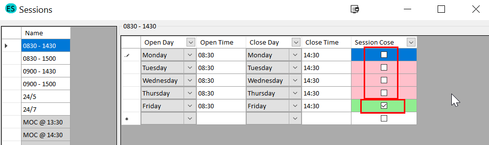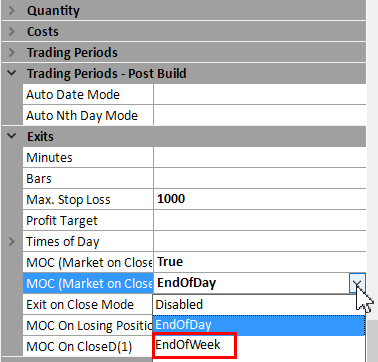 To use EndOfWeek UN-tick MOC exit and tick EndOfWeek