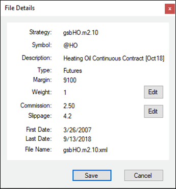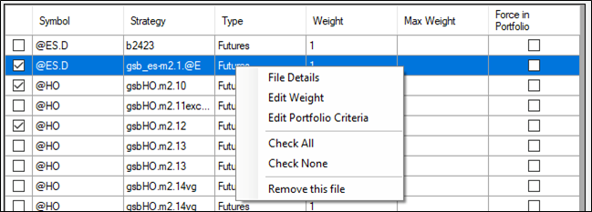 Portfolio Analyst Pro for Tradestation File Details & Editing If you double click any File, you can check the details, and here you have option to change the Weight, Commission and Slippage. You can also select a Portfolio and right click to get the options to edit or View details.