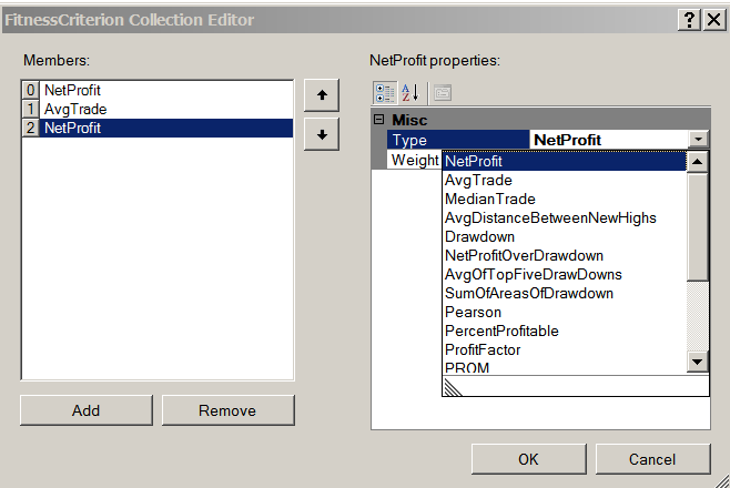 You can make quite complex fitness combinations. My preference however is to NP*AT (the defaults)