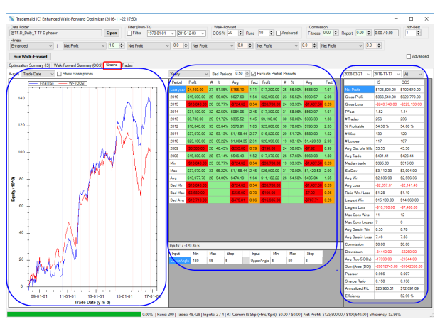 Enhanced Walk Forward Optimizer for Tradestation & MultiCharts Folder: “Graphs” The Graphs folder shows the following sections: - Equity curves. - Performance matrix - Statistics