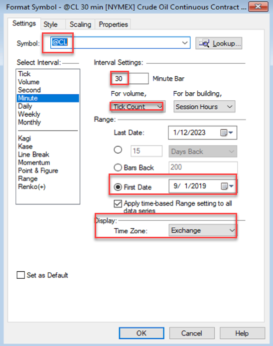 In this example I will use @CL 30 minute 830 to 1500 data from October 2019