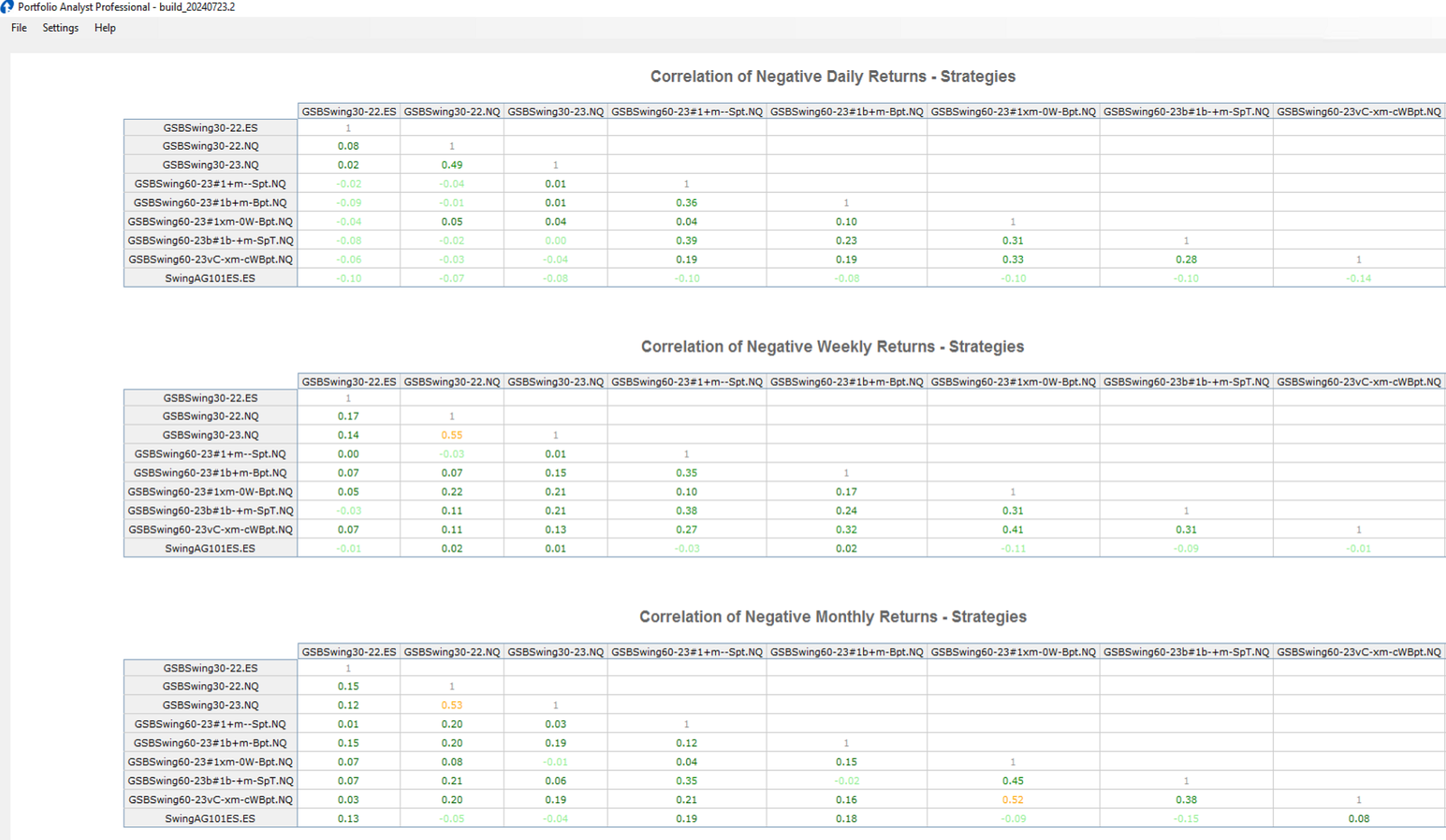 There are two NASDAQ variants with slightly different parameters and session time, and a S&P500 variants. The NASDAQ compared to S&P500 have loosing trade correlation of less than zero. (very good)