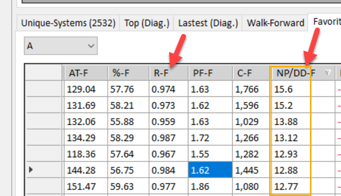 Note the above skipped step 2. Below Step 2 was done. Note how the below example has much better NP/DD-F ratios. Results however will vary significantly each time GSB builds systems.