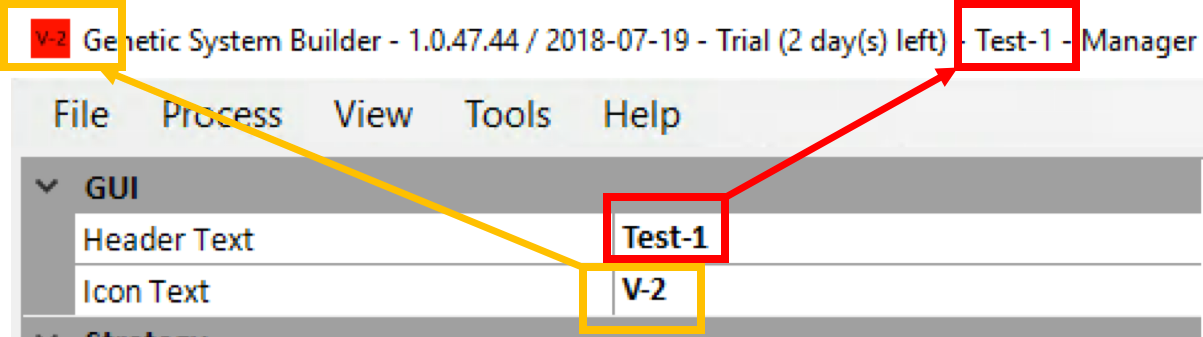 What you put in the “Icon Text” appears in the Icon section on the Top left, it helps if you have numerous GSB on the same PC.