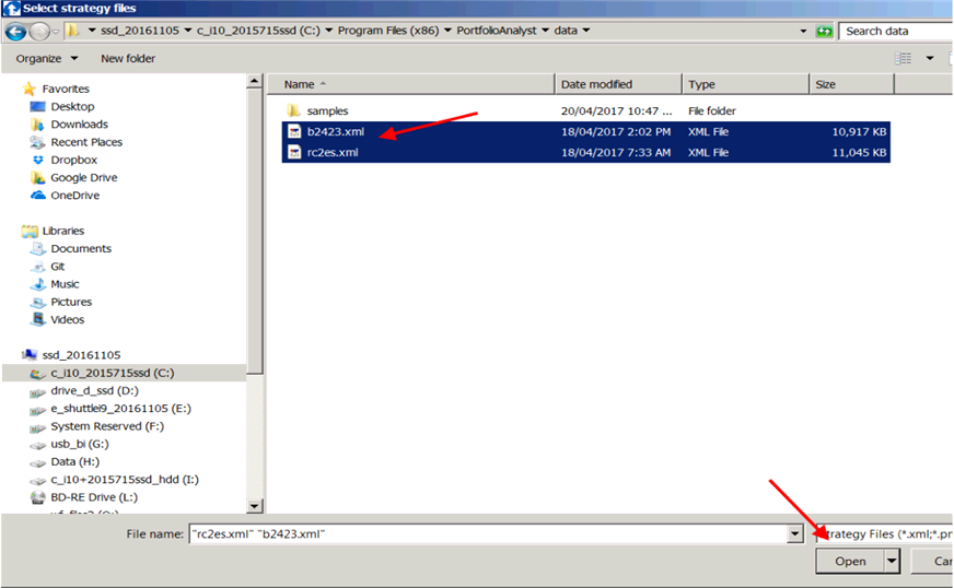 Save Tradestation xml file into C:\Program Files (x86)\Portfolio Analyst\data