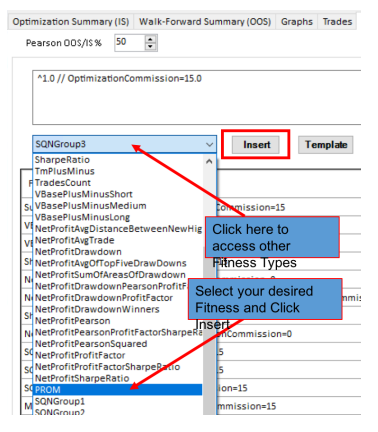 Click on the Fitness bar to Access other Fitness type. Select your Desired Fitness Criteria and Click Insert. This will be added in the Code section.