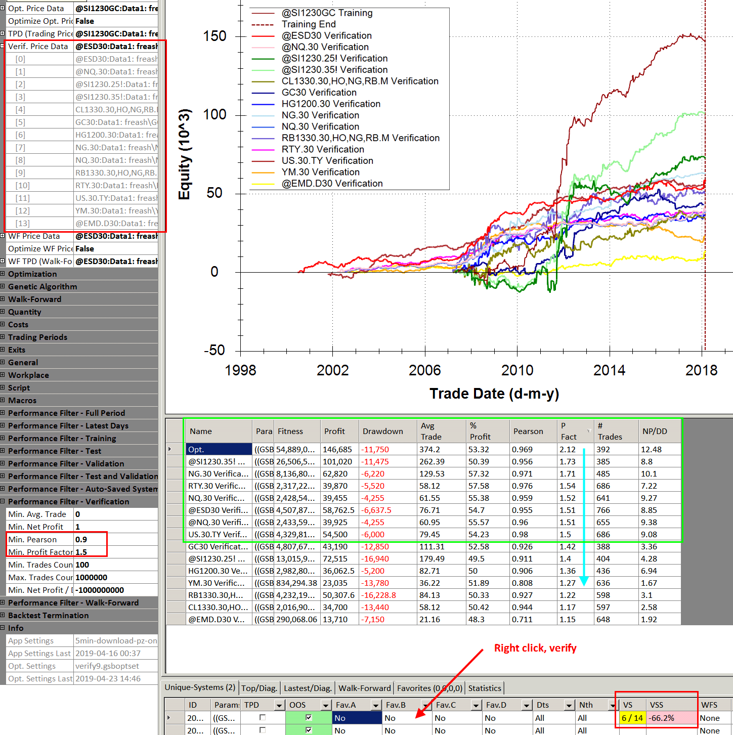 Optional, You may now choose to see how much the system degrades on other markets, other time frames.
