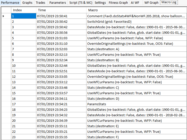 GSB top GUI tabs (Graphical user interface) Macro log Macro log shows the macro status / progress with time stamps For more on macros, click here.
