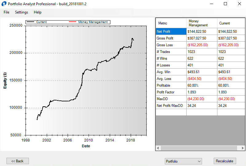 To see money Management for different instrument, you need to select the instrument from the dropdown list and Hit “Recalculate” Button.