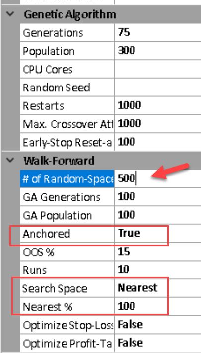 Below, 2500 tests were done, search space 100%. This is not as good as the above tests, so in these early tests 1000 random space tests with 100% search space was best.