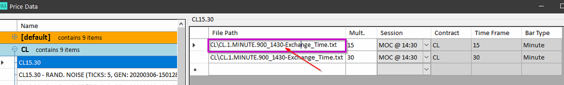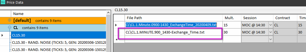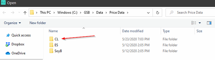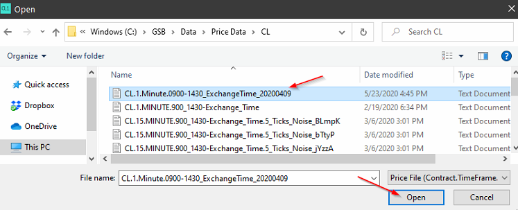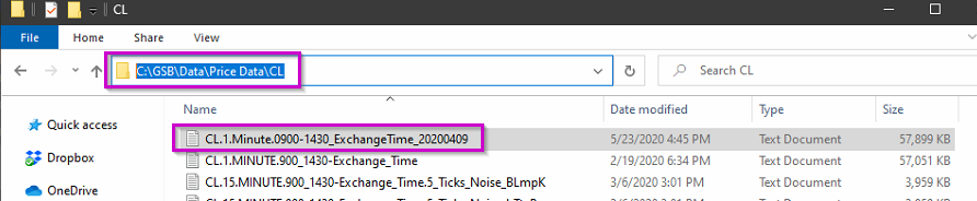 We now set the data file to the one we just downloaded from the forum and placed into folder C:\GSB\Data\Price Data\CL