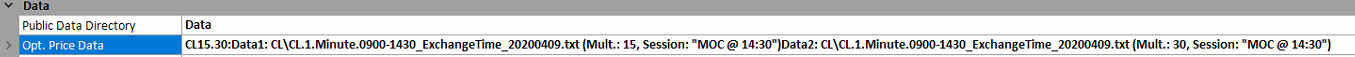 We select the data by clicking on the ... icon at the end of the Opt. Price Data line.