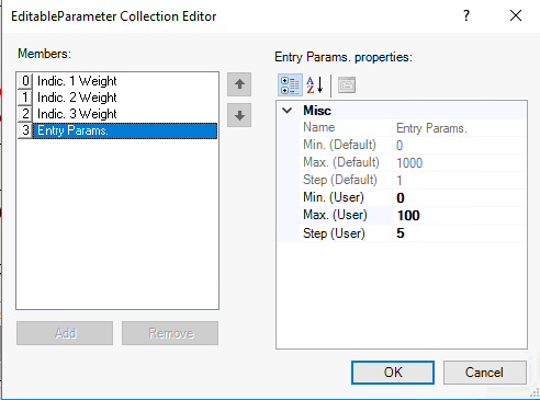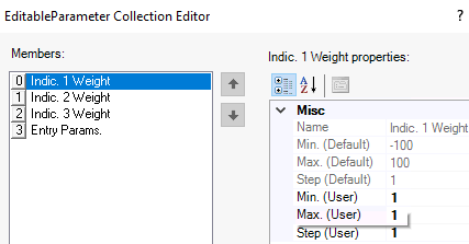 If operators + is used, then use 0 to 50 step 2 for 2 indicators.