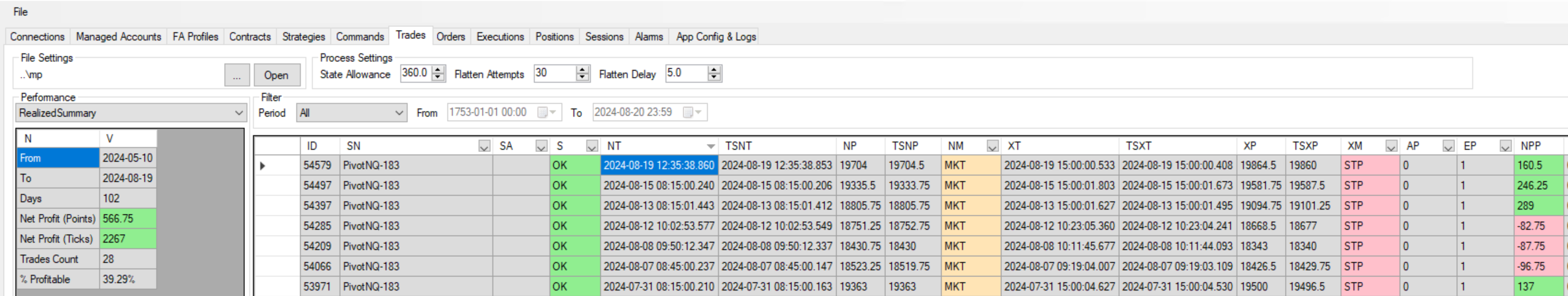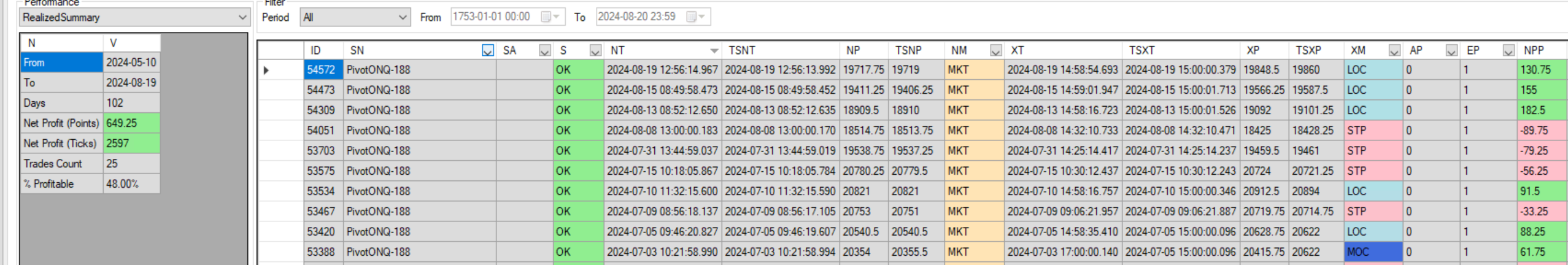 Real time results May 10 2024 to August 19 2024 = 566.75 points $11355 less brokerage.