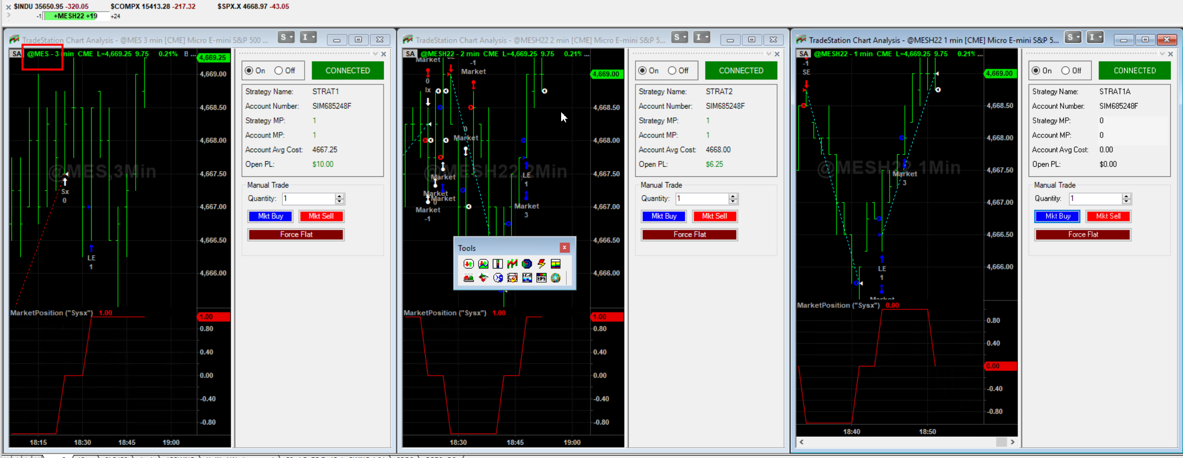 You can see here we are using symbol substitution and can have a chart with @MES on it, but trade @MESH21