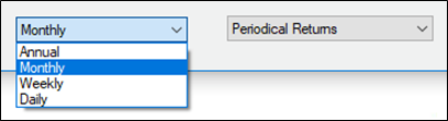 - Periodical Returns – Annual – Shows yearly return parameters in default. You can change it to Monthly, Weekly or even Daily.