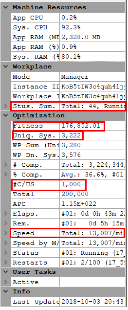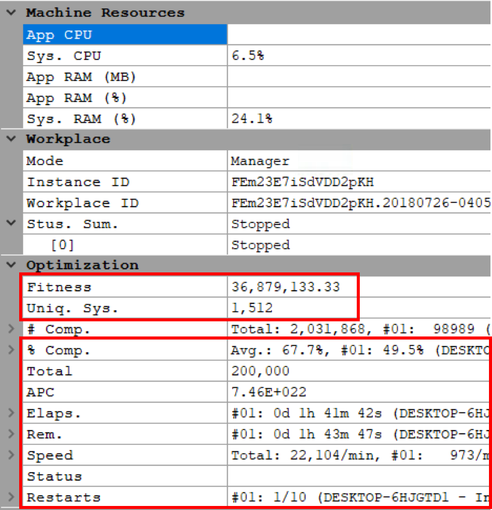 GSB had found 1512 systems, but few of them may be are the same system with different parameters. It is 67.7% completed its 200,000 iterations. (generations * population * restarts)