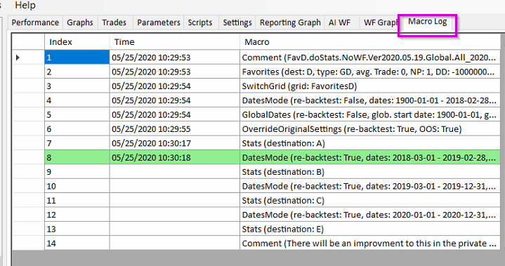 The progress will be shown in the Macro Log tab