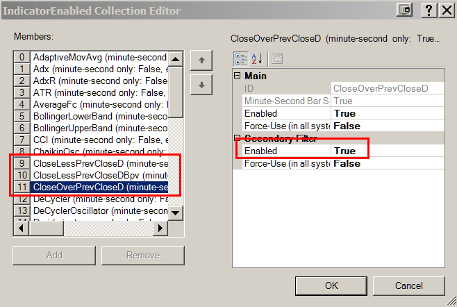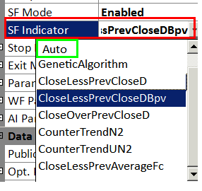 If the secondary filter is on GA+, then the secondary filters used in built in indicators will be used. Recommend defaults for secondary filter are closeLessPrevClosedBPV and closeOverPrevCloseD. These same secondary filters are available form the SF Indicator selection (picture above), but they work differently. The GA secondary filters are normalized, and the non GA filters are not normalized. This makes a substantial difference in results and is critical to chose the correct secondary filter. (GA or non GA)