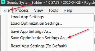 To do this we click on the File menu item and then click Save Optimization Settings As...
