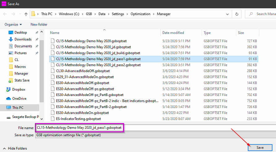Before we start building systems we should save our optimization settings. This can be done numerous times as you are setting up GSB manager
