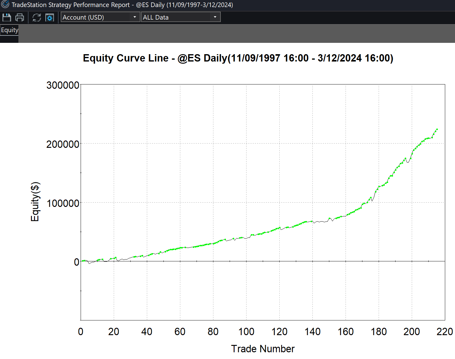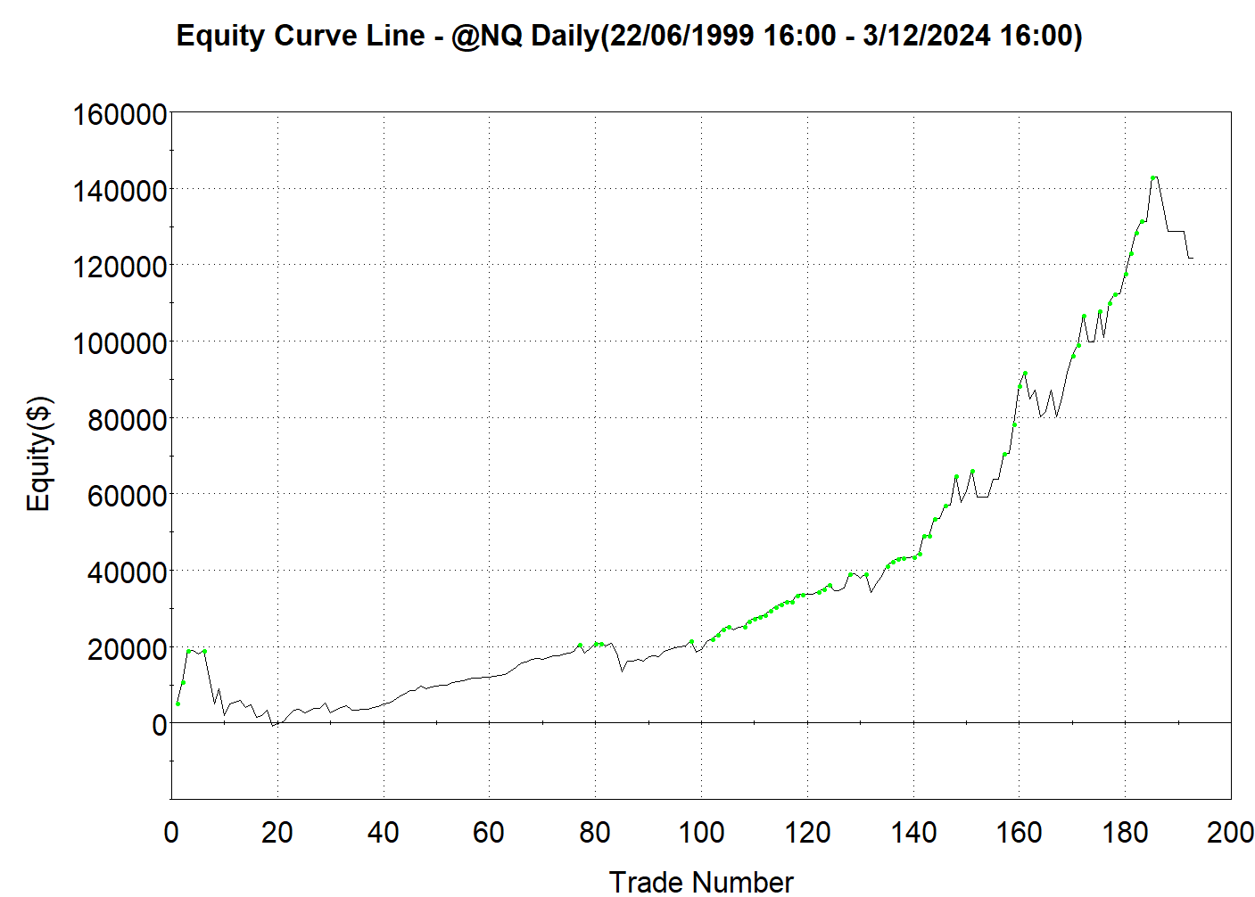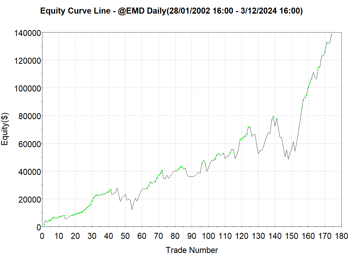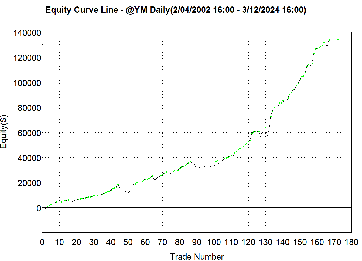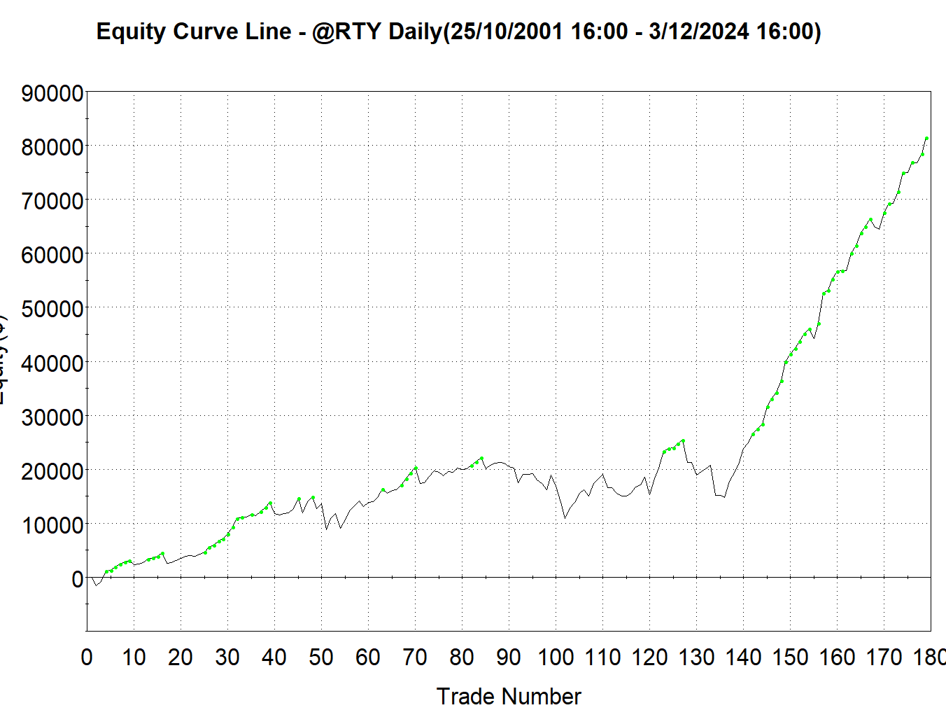 Results not shown, but NQ and possible @RTY (Emini Russell 2000) can also be traded, but results are not as good on these markets.
