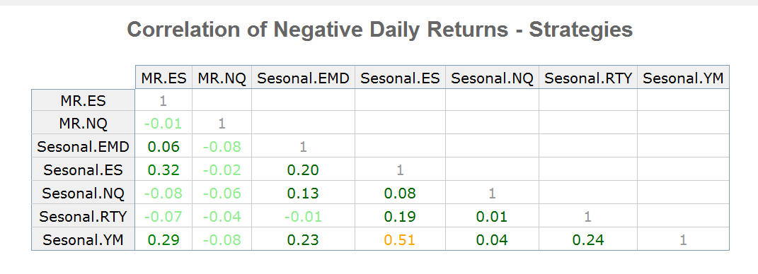 Correlation of loosing trades from mean reversion to Seasonal is low.