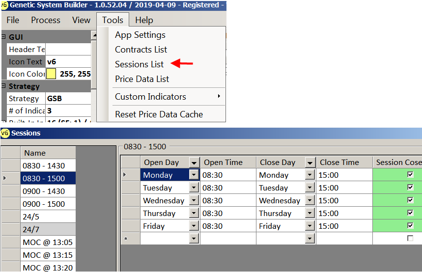 This now matches how Tradestation and Multi-Charts work. The only difference is session times in GSB are related to the time stamps on the data,