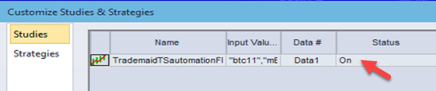 This must also be added to the strategy you trade. Use the same UniqueAppName as whats in the study.
