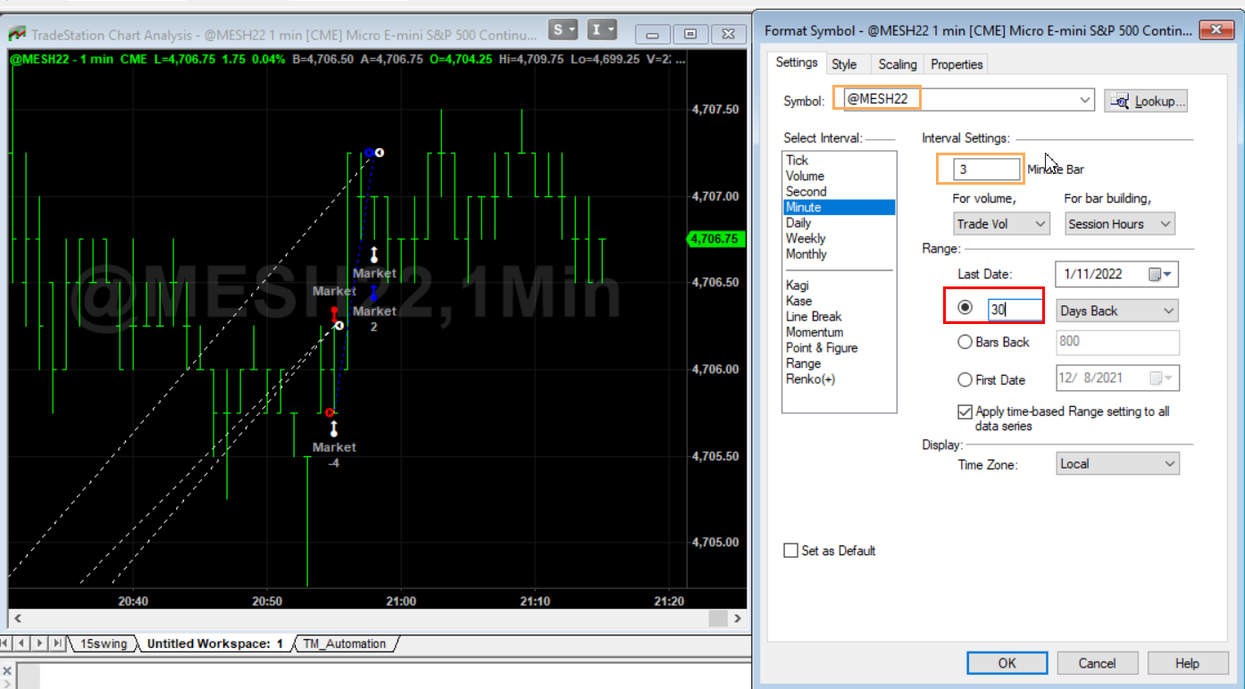 Better fills can also be obtained, especially for market on close orders. Symbol substation can also be done. IE have a chart with @ES.D but trade @MESH22