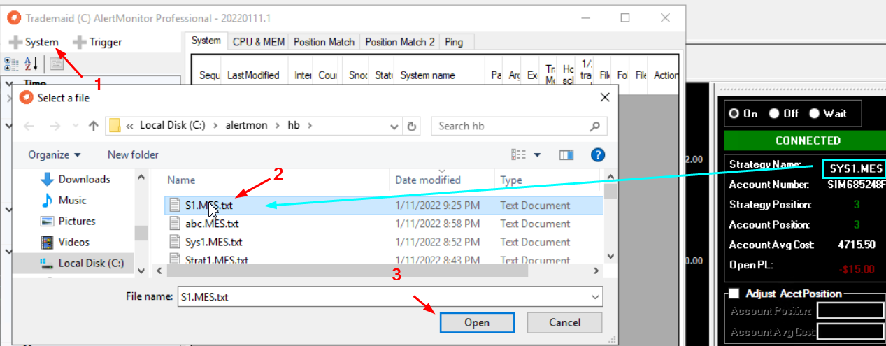 Now add the system "SYS1.MES" Into alertmon.(s1.mes shown)