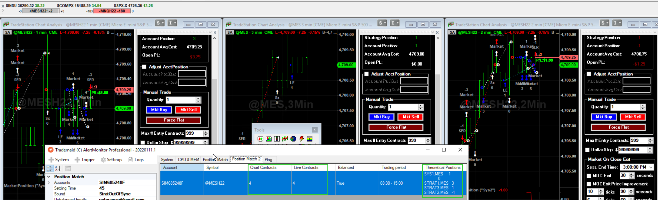 High level, there is Trademaid Automation which replaces less robust TS execution, and there is Alertmon which monitors your TS, VM, syncing of positions between live brokerage account and whats on your charts. You the user of this software product should have alerts monitored by yourself and or backup person any time the markets are open.